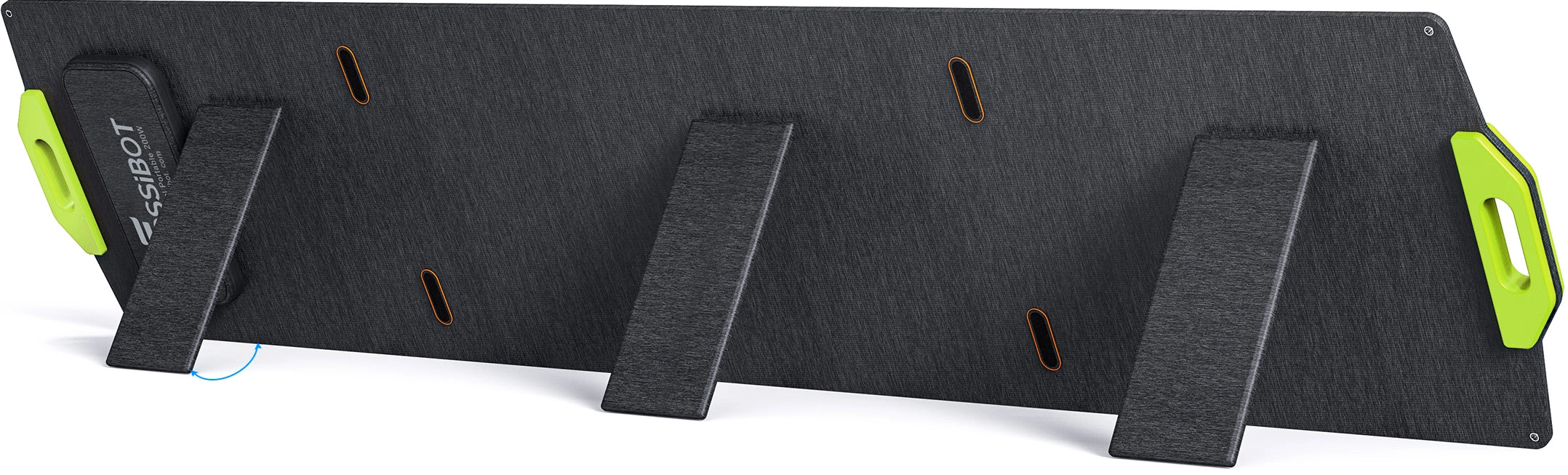 Apri il pannello solare, aggancia i cavalletti, regola l’angolazione e sei pronto a sfruttare l’energia solare per i tuoi generatori.